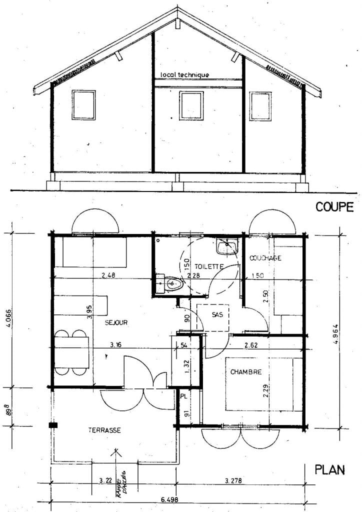 Ce chalet de plein pied, d’une surface de 25m², pour 4 à 6 personnes équipé d’un séjour salon équipé d’un 1 clic-clac, d’une chambre avec un lit double, une chambre avec 2 lits superposés, salle d’eau et WC et un espace cuisine doté d’une kitchenette.