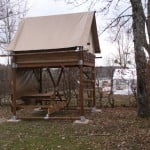 Le Bivouac, ce lodge vous accueille dans une structure de bois et de toiles de tente : au rez de chaussée, l’espace repas, à l’étage votre espace de couchage, une échelle d’accès en rondins vous permet d’accéder à cette mezzanine (trappe accès et verrou)..