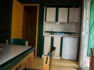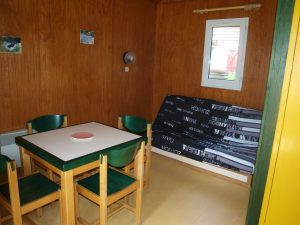 Ce chalet de plein pied, d’une surface de 25m², pour 4 à 6 personnes équipé d’un séjour salon équipé d’un 1 clic-clac, d’une chambre avec un lit double, une mezzanine avec 2 lits superposés, salle d’eau et WC et un espace cuisine doté d’une kitchenette.