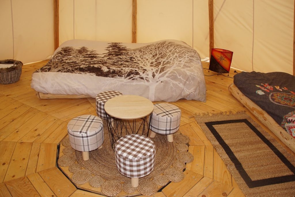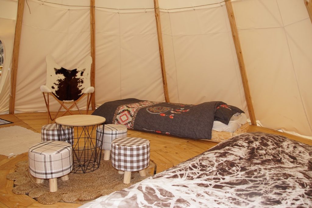Venez goûter aux joies d’une nuit dans un véritable tipi indien dans notre camping situé au coeur de l’Auvergne, à proximité de Vulcania et de nombreux autres sites touristiques. Le tipi d’un diamètre de 6 m, soit une surface d’environ 30m², est équipé d’un plancher intérieur bois, de lits pour 4 personnes avec couettes et oreillers.